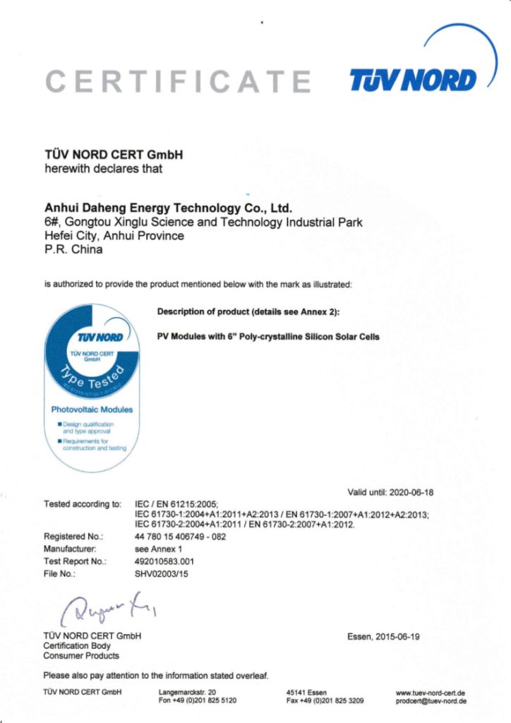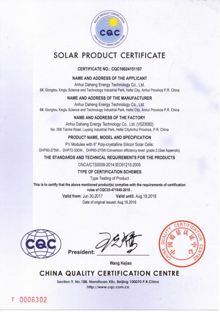 Xem thêmDAH Solar PV modules have been certifited by TUV, CEC, CE, INMETRO, FIDE, ISO19001, ISO14001, OHSMS18001, CQC etc domestic & international authorized certifications.